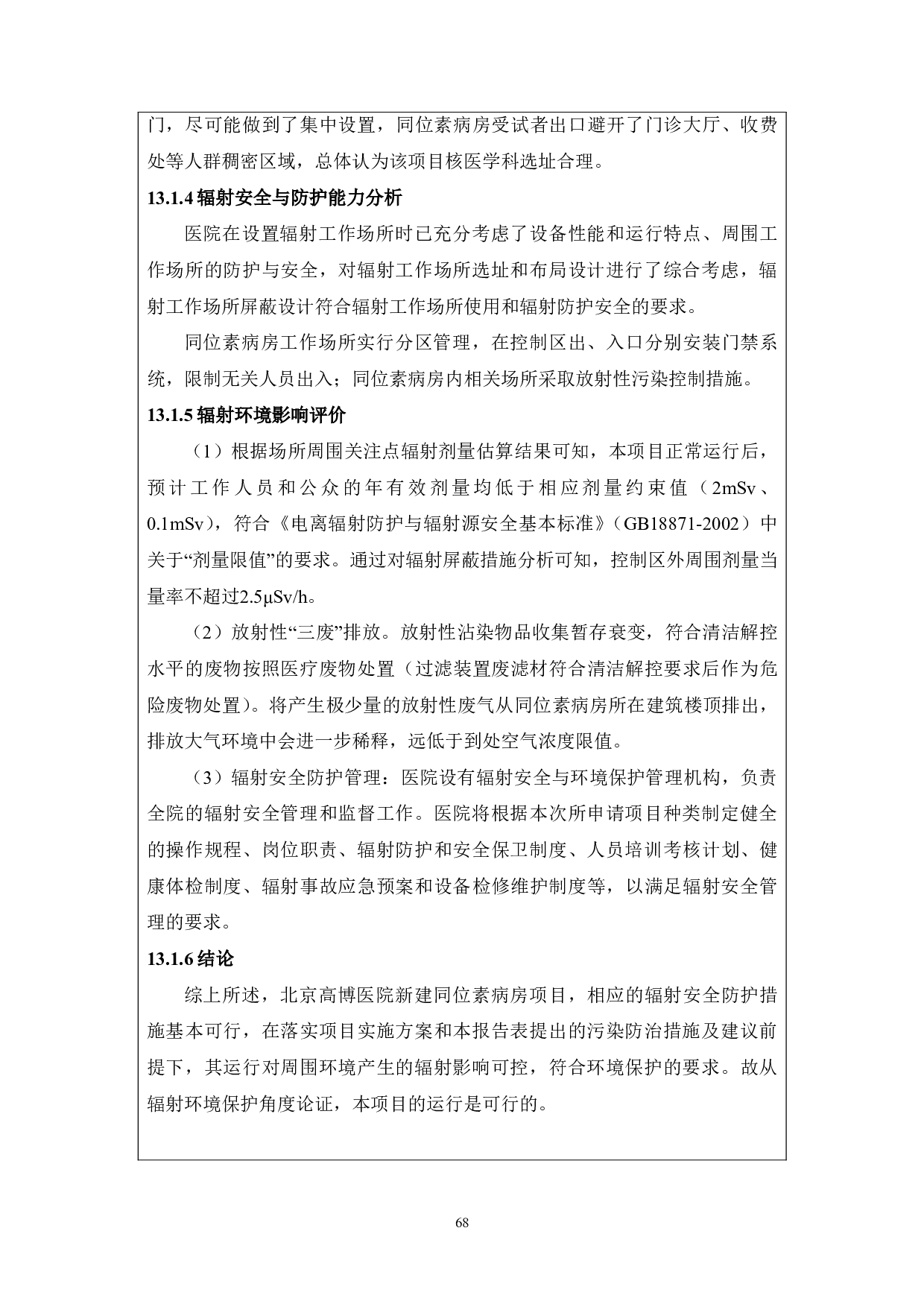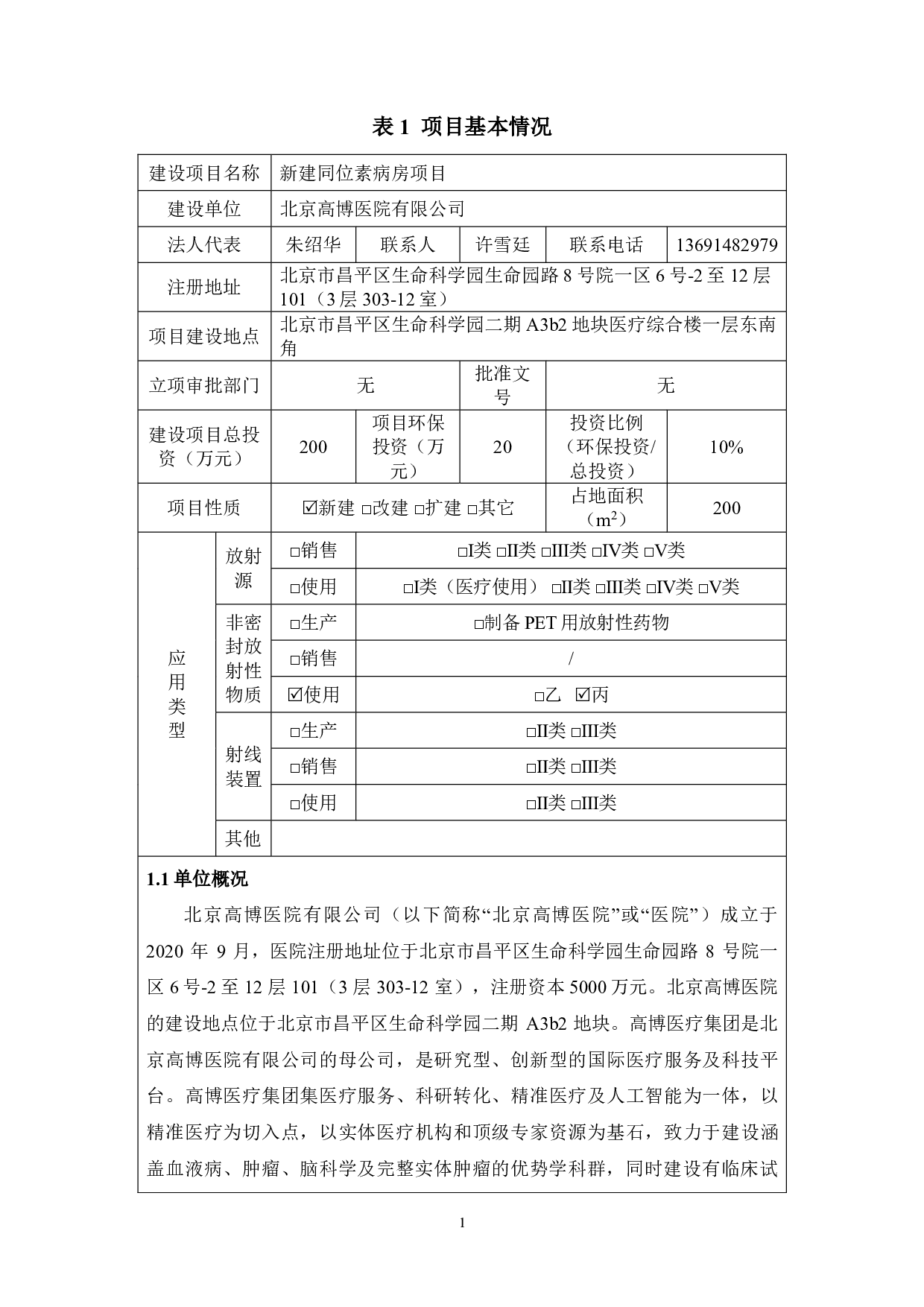 新建同位素病房环境影响评价报告表全本公示